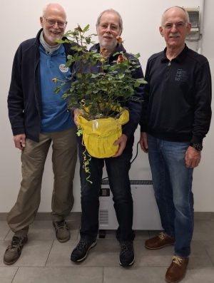 Anlässlich des Fahrerstammtisches am 20.10.2025 haben Wolfgang Rodewald und Reinhard Ries unseren Fahrer Hardy Peters offiziell verabschiedet. Für seinen fünfjährigen Einsatz gab es neben anerkennenden Worten für sein stets freundliches und vorbildliches Engagement auch eine Rose für den eigenen Garten. Die schöne Blume soll Hardy auch in vielen Jahren noch an die Zeit im BürgerBus-Verein erinnern. Von Ende 2020 bis Oktober 2025 war Hardy als Fahrer aktiv und hat dem Verein und vielen Fahrgästen viel ehren- amtliche Zeit mit stets guter Laune und viel Freundlichkeit geschenkt. Aus persönlichen Gründen musste er die Fahrertätigkeit jetzt beenden. | ![]() Wir sind ihm für die vielen gefahrenen Kilometer und die damit verbundenen Aktivitäten sehr dankbar und wünschen ihm für die Zukunft alles Gute! (21.10.2025) |